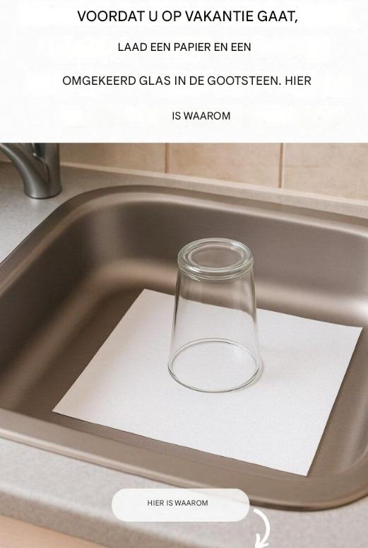 Hier is de reden waarom je altijd een omgekeerd glas en een vel papier in de wasbak moet laten staan voordat je op vakantie gaat. Norvégien (détectée) Néerlandais Formalité