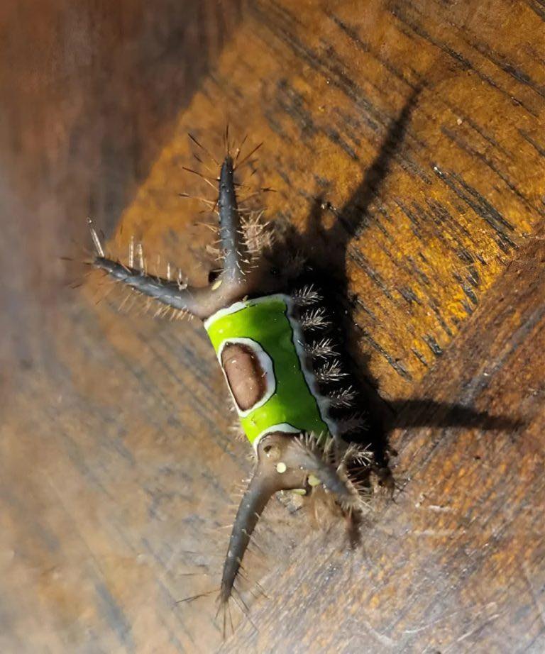 - Giftige pigger (Urticating hairs): Larven er dekket av hule pigger som er koblet direkte til giftkjertler.
