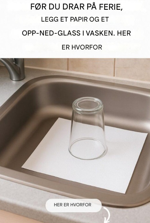 Her er grunnen til at du alltid bør sette et glass opp-ned og et ark i vasken før du drar på ferie